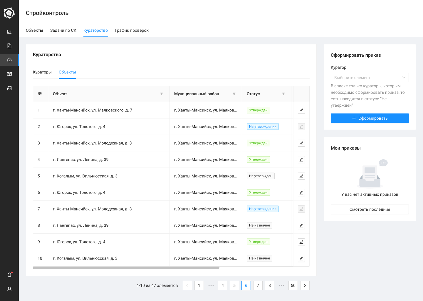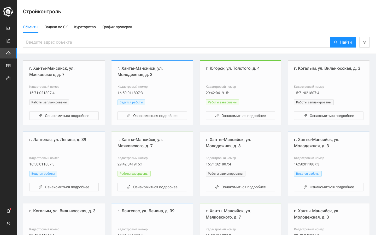 - — Строительный контроль: реестр объектов, реестр кураторов, постановка задач