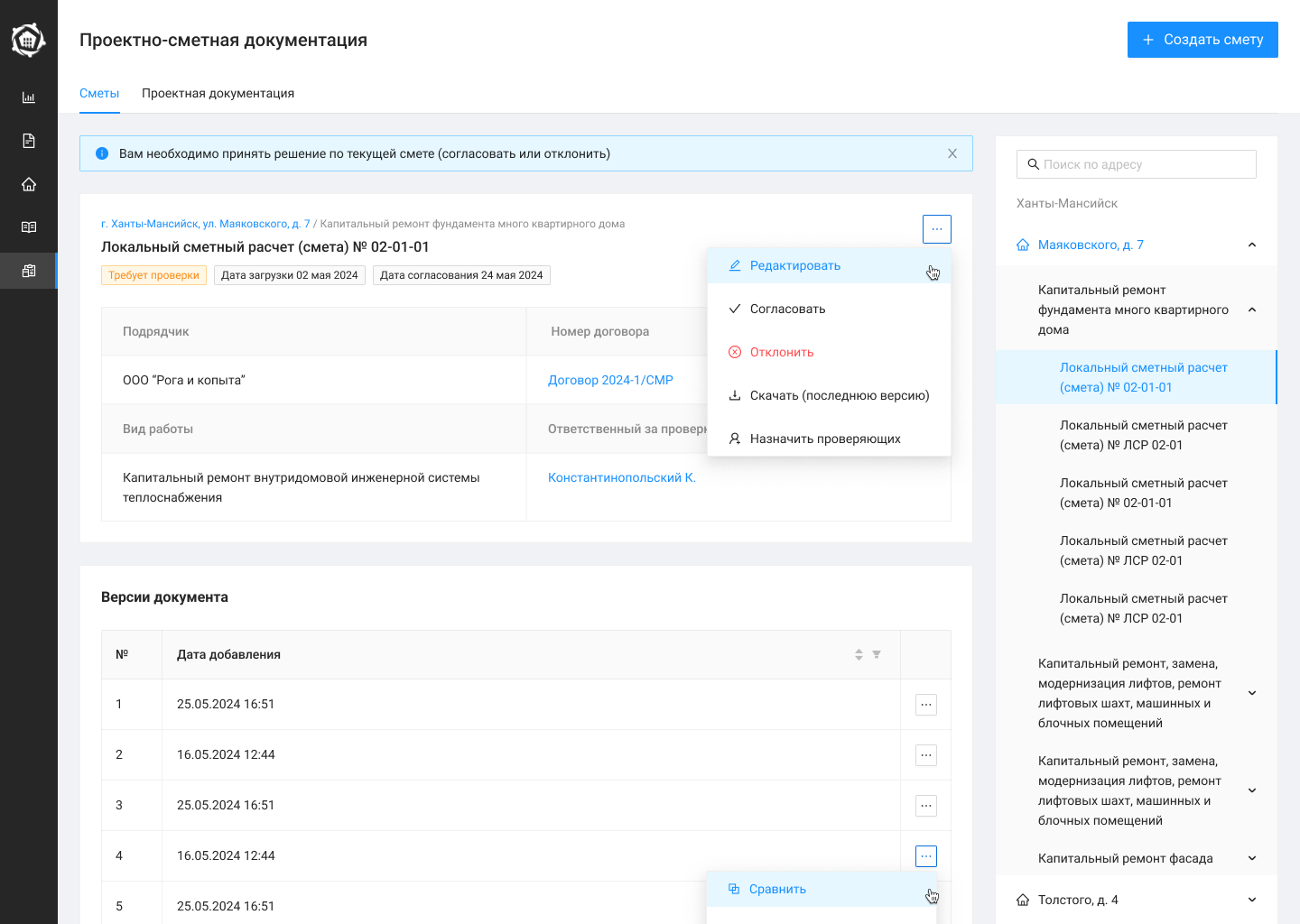 - — Работа со сметами проектов